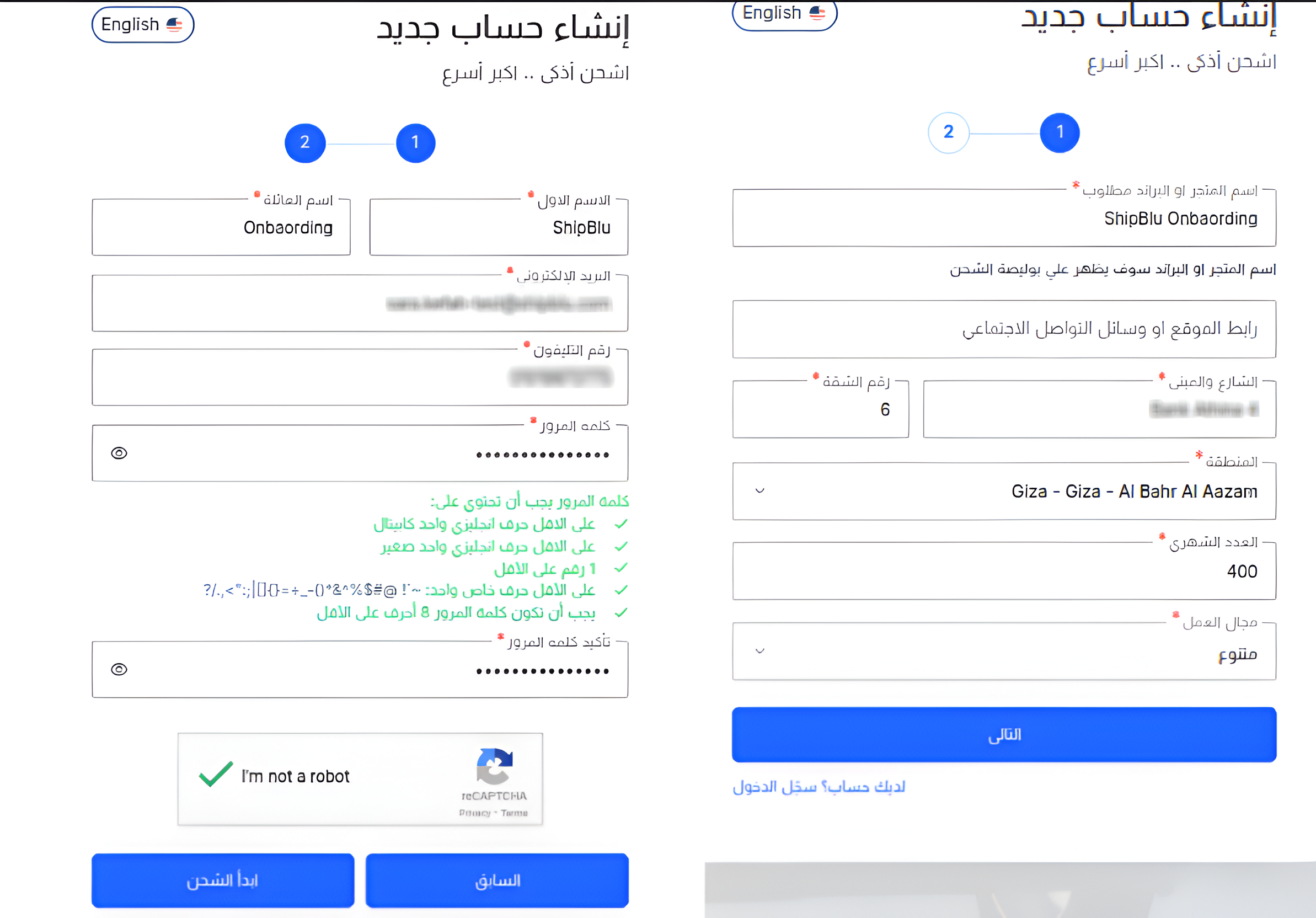 - بعد الموافقة على الشروط والأحكام. سيتم استكمال تسجيل بيانات الحساب الخاص بك بشيب بلو.