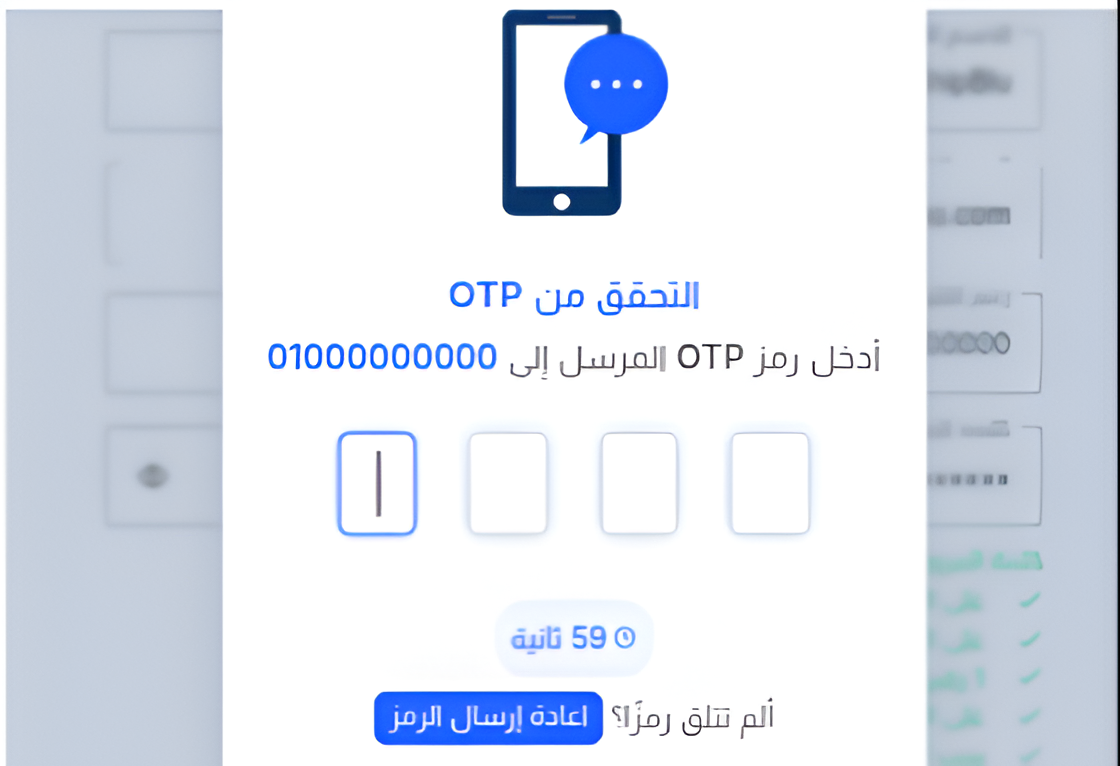 - سيتم إرسال رسالة نصيبة بها كود تأكيد للتحقق من صحة رقم الموبيل.