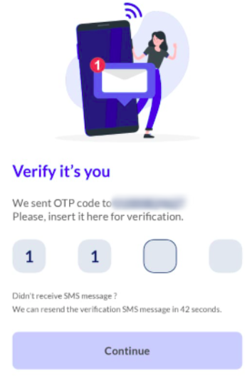 سيقوم العميل بإدخال رقم الهاتف المحمول المسجل على الأوردر لتسجيل الدخول إلى تطبيق myBlu.