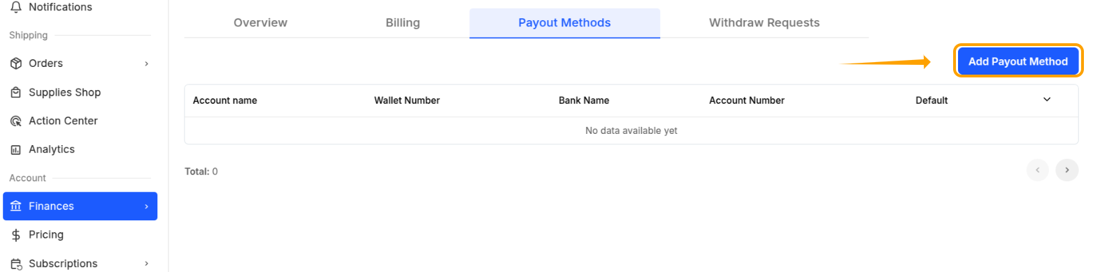 Click "Add Payout Method."