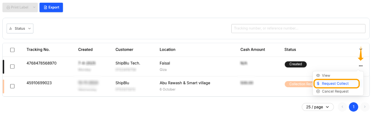 ShipBlu offers a cash collection service by assigning a courier to reach the customer based on the registered order details to collect the required amount, and then to deposit it into your ShipBlu account. This cash collection will be transferred normally on your weekly transfer day.